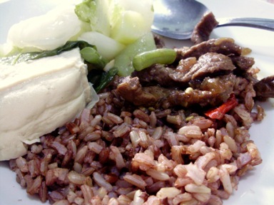 Makan siang: karbohidrat (bukan nasi putih dan bukan roti putih, misalnya: nasi merah, kentang, roti gandum), protein (daging, ayam, ikan, telur, tahu tempe), sayuran. Nah ini nih yang seru…makan siang. Makan siang gue so far biasanya nasi merah, lauk protein sama sayur rebus. Gue bereksperimen bikin-bikin lauk protein yang sehat dengan minyak yang sehat dan bahan-bahan yang sehat. Lauk yang biasa gue jumpai sehari-hari gue akal-akalin aja bikin versi sehatnya, dan porsi mini 😀 Seru bagi gue yang demen main di dapur.