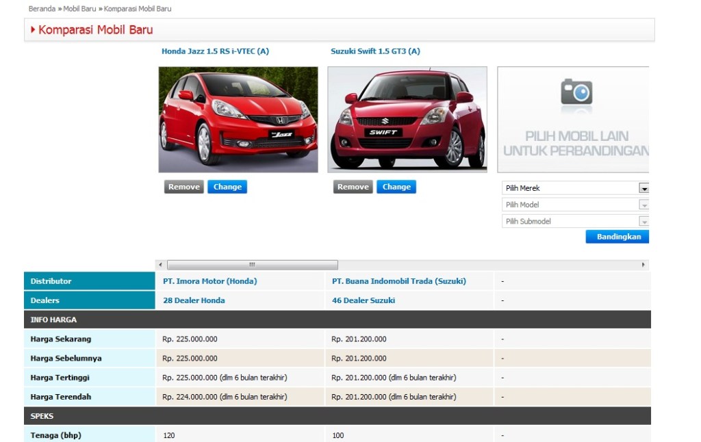Contoh fungsi serbaguna yang ada adalah Komparasi Mobil Baru. Setelah pilihan sudah dikerucutkan, tahap selanjutnya butuh pemikiran lanjut yaituuu: perbandingan atau kerennya komparasi. Contohnya ada di gambar di bawah, gue membandingkan Honda Jazz dan Suzuki Swift. Terbayang ribet mondar mandir, atau mendapat info selentingan yang katanya ini katanya itu? CarMall.com sudah menyiasatinya. Tanpa ribet membolak-balikkan halaman kamu bisa pilih mobil baru yang ingin kamu bandingkan, klik, dan voila! Harga dan spek disandingkan sehingga dengan cepat kamu bisa bandingkan angka-angka dan fitur tiap-tiap mobil. Praktis, cepat, dan jelas. Gue termasuk tipe orang yang harus tau betul apa yang gue dapat dengan harga yang gue beli jadi fitur seperti ini sangat bagus dan membantu untuk memilih. Udah gak jamannya lagi beli apa-apa kayak beli kucing dalam karung jadi kita harus mempelajari semua opsi yang dapat kita jangkau supaya yakin pembelian kita sudah merupakan keputusan terbaik. Sayang kan kalau kamu terlambat tau informasi dan menyesal di belakang.