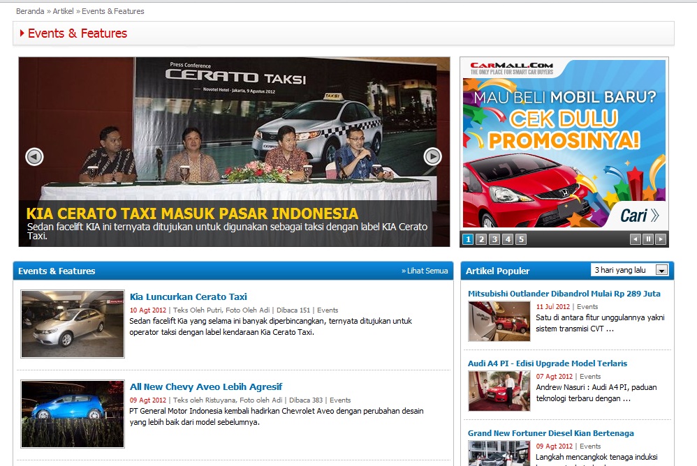 Selain itu, buat kamu yang hobi otomotif dan ingin ter-update info seputar peluncuran mobil langsung tau dari Events & Features Carmall.com. Dengan begini kamu bisa memutuskan mau beli mobil yang sudah ada dipasaran atau menunggu mobil keren baru yang baru diluncurkan..it’s all up to you.