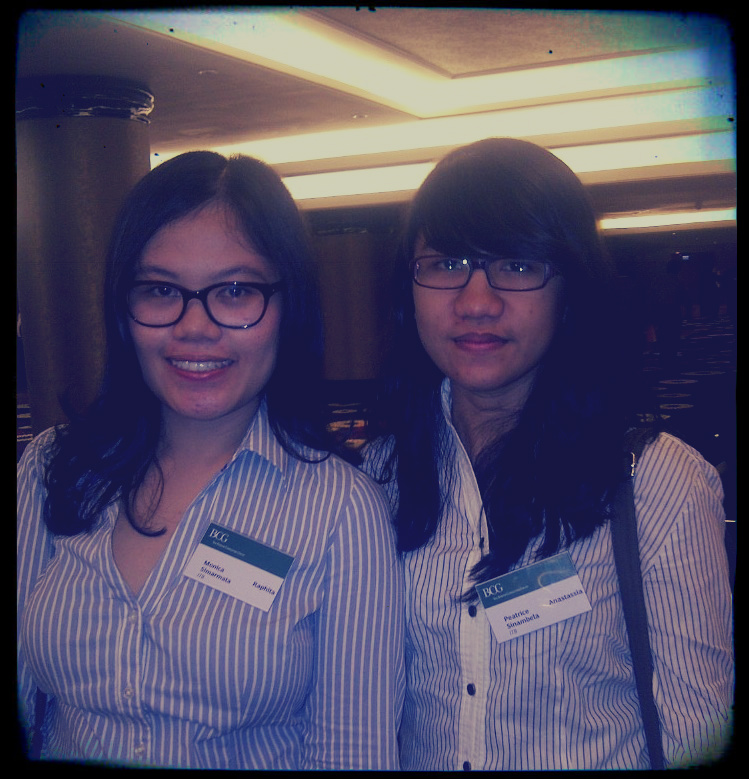 Working in a consulting firm never crossed my mind. Never. Ever. Why? Because I kinda felt intimidated! I thought consulting is for genius-es with fat GPA’s. But today’s event held by BCG truly opened my mind. It kinda fit my post-internship complaints of a boring lifestyle as a process engineer. I liked the idea of working on different cases and the exposure it gives to a wider array of companies. That totally fits me! Gue anaknya cepat jenuh dan harus distimulasi dengan dynamics. That kind of clicked. Belum lagi tantangan yang selalu ada to bring something to the table. I get ‘turned on’ by challenges as well. In just a couple of hours, BCG turned from a company that was never on my list to a dream company. I guess they succeeded haha. I was kind of surprised that I got in the cut to the networking dinner but I’m starting to understand perhaps it was meant to be. For me to reveal what all this time I’ve turned my back on…a career in consulting. Not to mention that I love giving advice to people and listening to other people’s problems since I was a kid. So…building a consulting career after graduate school is becoming quite a solid plan…the future isn’t quite blurry anymore. Obviously I can’t predict how it’ll be, but at least I know where to navigate each of my step and decision. But I’m not the rigid kind of person…I still keep my options open and be open to opportunities. As my dad says, let it flow.