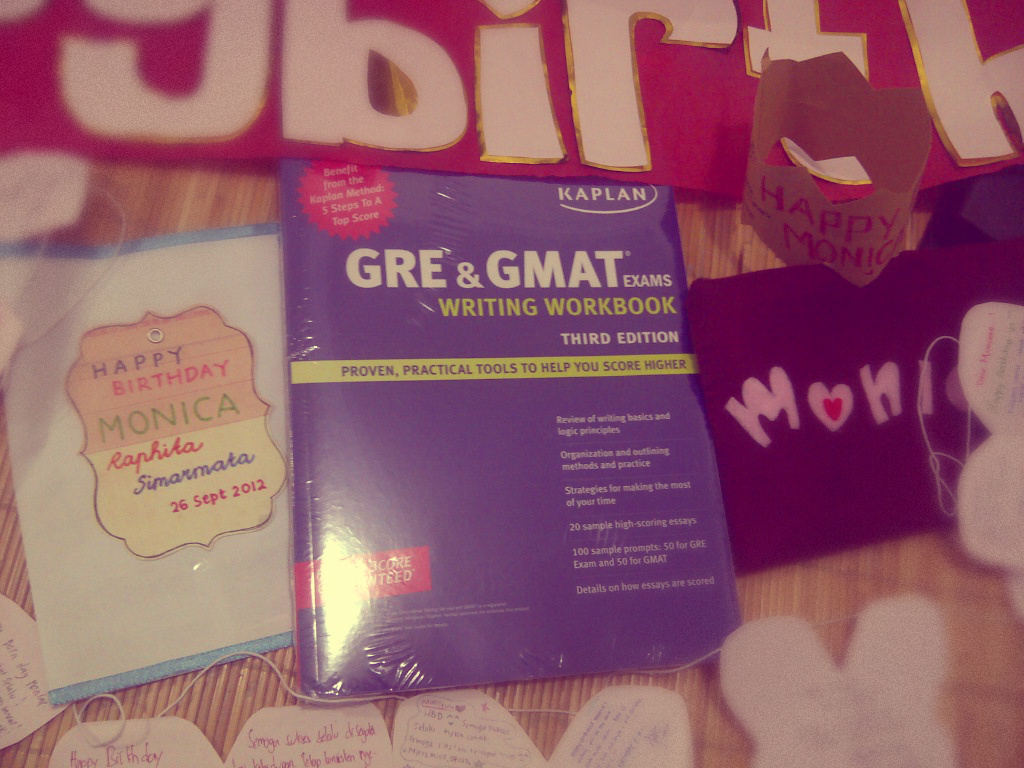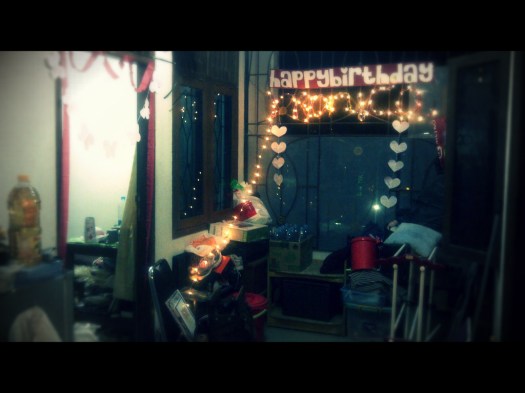 Kemaren gue disurprise-in di luar dugaan! Kan biasanya cara surprise itu klasik (jam 12 malem rame-rame ke kosan yang ulan tahun, ditepungin/gak, terus tiup lilin). Tapi kali ini nggak. Setelah beraktivitas (nyalon sebelum ngampus karena hari spesial hahaha), kuliah (yang dibatalin! Kuliah yang harusnya dari jam 7-6 dipangkas jadi jam 4-6 saja), dan tiup lilin HIMATEK (oh iya, ultah gue bebarengan dengan ultah HIMATEK yang ke-60..dan secara simbolis yang niup lilin itu gue. Dan lilin yang ditiup angka 60 ._. yasudahlah haha), gue berencana ngajak anak-anak makan ke luar gue traktir. Gue semobil sama Elsa, Bibil, Santi, sama Tri. Di tengah jalan gue di-BBM temen kosan dan temen SMA, si Yodia suruh balik kosan, si ibu kosan nyariin. Gue bingung walah kenapa, kok tumben gak nelfon. Awalnya gue enggan, karena males banget, macet pulaaaa. Tapi karena didesak temen-temen di dalem mobil, seperti kata Santi, “Jangan-jangan ada cowok mon yang dateng” atau “Jangan-jangan nyokap lo ngirim paket, kue yang meleleh gituu disuruh ambil biar gak sayang.” dan si Tri yang masuk angin mau minta minyak angin yasutra deh ke kosan dulu sebelum bertolak ke Sushi Tei…setiba di kosan….tau-tau dari gerbang banyak lampu kecil-kecil yang kuning di dekat jendela kosan. Wah gue curiga….ternyata dateng-dateng luarnya kamar kosan gue dihias dengan super lucu. Ada lampu-lampu kecilnya segala kayak di cafe-cafe, dan dirangkai jadi namaku. SUPER UNYU! Gak lama kemudian di lantai bawah udah banyak anak-anak, dateng bawa cupcake dan lilin dan nyanyi. Ini gak sesuai plan sih, harusnya pas gue nyampe udah rame…eh malah beda hahaha, kurang dibriefing guenya hahaha. Terus itu hiasnya tadinya mau di dalem kamar gue, tapi karena gak ada kunci serep, jadinya di luarnya deh. Kyaaaa. Terus foto-foto seru. Oh iya, di depan kamar gue juga ada kado dari temen-temen, which is tempat tas kecil felt bikinan Tyas dan buku latihan GRE dan GMAT dari Elsa, Nia, dan Bibil. Super super terenyuh deh. Sayang gak bisa langsung makan-makan karena yang anak-anak BP pada mau rapat, gue juga udah janji meeting di Siete dengan orang Warm Up IT. Beres meeting gue ngerayain bareng anak uksu. All in all it was an awesome 21st. It’s my last birthday di ITB dengan keadaan angkatan masih utuh anak-anaknya, belum pada nyebar ke belahan dunia…and it was totally berkesan dan akan selalu gue ingat..kapan lagi coba diginiin kalau bukan pas jaman kuliah 🙂 MAKASIH SEMUANYA :* ELSA SANTI BIBIL TYAS PRISKA DENISSA REA DIEGO ADI BONJAY TRYANTI NENI NUEL ARIFA RICKO PUTRA GABY GERALDY OBED DAVID SEMUAMUA YANG UDAH NGUCAPIN DAN INGAT. :3 :3